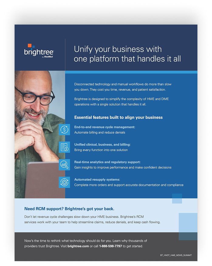 See firsthand how Brightree helps HME businesses streamline operations, strengthen financial performance, and enhance patient experiences, all in one modern platform.